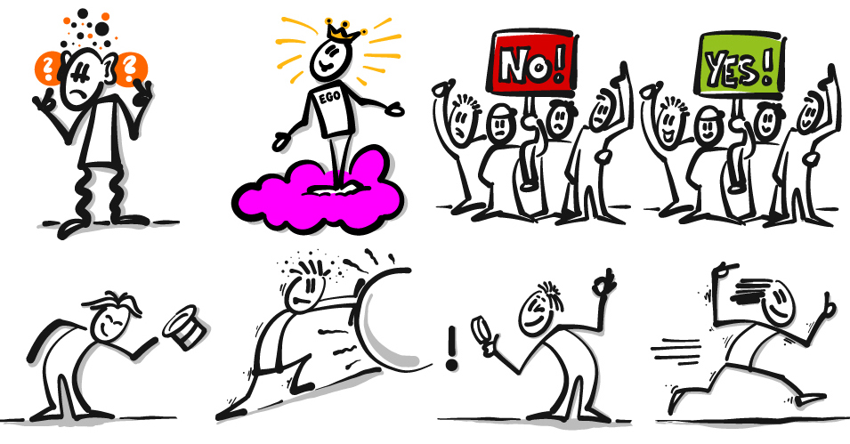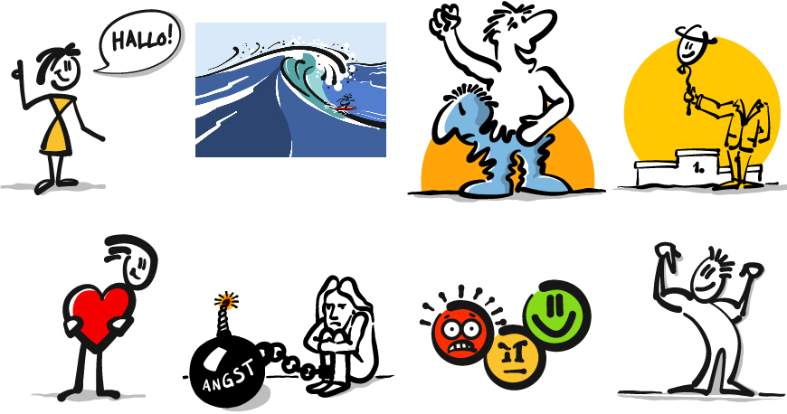 Sie lernen, mit einem einfachen Zeichenrepertoire Inhalte, Situationen und Emotionen schnell und übersichtlich darzustellen. Wir üben „live“ am Flipchart, wie Sie sich durch Visualisierung Aufmerksamkeit verschaffen und Ihren Zuhörern das Verstehen und Erinnern leichter machen.